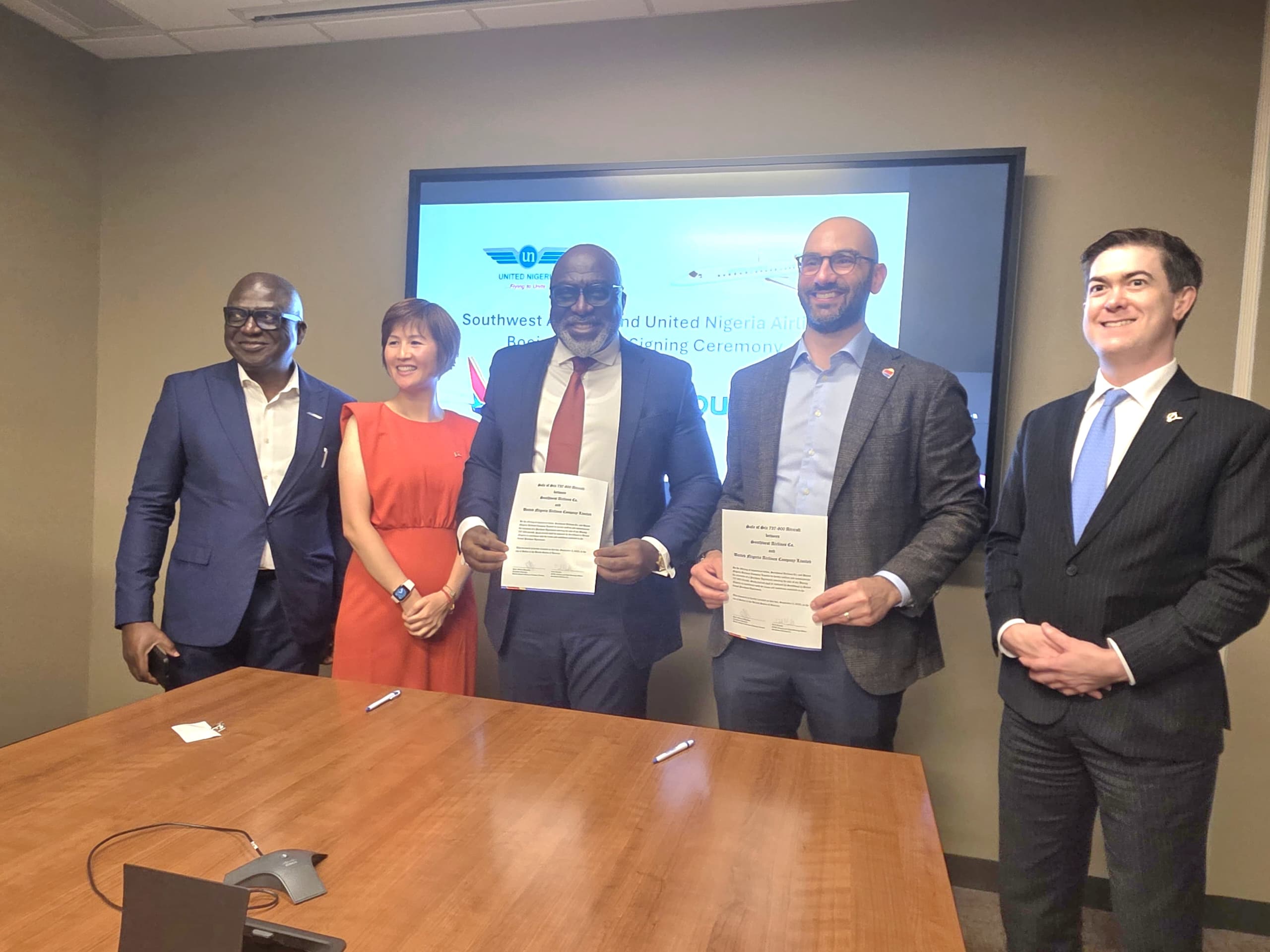 In addition, this acquisition will generate thousands of direct and indirect jobs and boost the Nigeria’s economic development and growth in line with the policies of His Excellence President Bola Ahmed Tinubu, GCFR.”Professor Okonkwo added: “We must put on record the strong support we have received from Boeing throughout the entire process and the promise for continued support to ensure a smooth entry into service and operation of the fleet. The excellent maintenance culture of Southwest Airlines, which is in line with United Nigeria Airlines’ culture, motivated us to make the acquisition. We are looking forward to continued collaboration with Southwest Airlines post-delivery in different areas such as: training and maintenance support, among other areas. Consequently, we have also expressed interest in acquiring an additional four Boeing 737-800 NG aircraft, bringing the total to ten, which will be inducted into the United Nigeria Airlines fleet between the first quarter of 2026 and the first quarter of 2027.”“We are pleased to welcome United Nigeria Airlines to the 737 family with its first 737-800,” said Anbessie Yitbarek, Boeing’s vice president of Commercial Sales and Marketing for Africa, speaking during the signing ceremony at the corporate campus of Southwest Airlines in Dallas, USA. “The 737-800 will provide United Nigeria Airlines with superior reliability, fuel efficiency and high-value returns operators require in today’s competitive market.”This acquisition was brokered in partnership with SkyWorks Holdings, LLC. “We’re pleased to have partnered with Southwest Airlines as they continue to restructure and modernize their fleet, said Anders Hebrand, Chief Commercial Officer of SkyWorks Holdings, LLC. “With United Nigeria Airlines, these top-of-the-line 737-800s have found a great home in the growing African aviation market, where they will be productive for many more years to come.”About United Nigeria AirlinesUnited Nigeria Airlines is one of the fastest growing airlines in Africa, dedicated to delivering safe, reliable, and customer focused air travels. Since its inception, the airline has connected Nigerians across key cities and is expanding to regional and international destinations. Its mission is to unite people and places through efficient, affordable, and world class traveling experience and service.About Southwest AirlinesSouthwest Airlines is the world’s largest operator of the Boeing 737 and a global leader in affordable and reliable air travel. Headquartered in Dallas, Texas, the airline is recognized for its efficient fleet and customer-focused service.About SkyWorksSkyWorks provides a full complement of leasing, investment banking, and advisory services exclusively dedicated to commercial aviation. SkyWorks specialize in aircraft lease origination and providing a full suite of aircraft and lease management services for airlines and investors. SkyWorks is also a premier advisory and investment banking firm with key activities including financing arrangement, order campaigns, restructuring advisory, and network and fleet advisory.Corporate Communication DepartmentUnited Nigeria AirlinesLagos, Nigeria